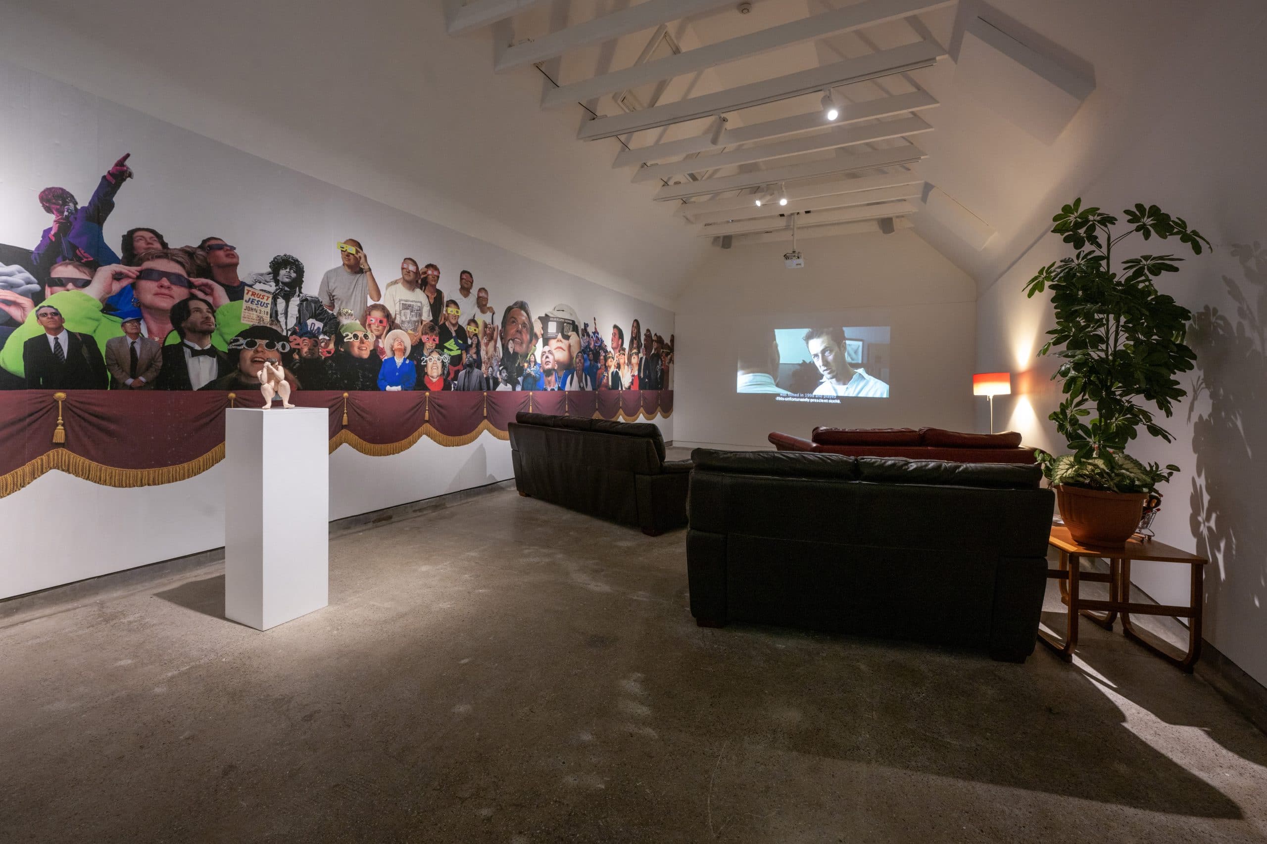 In an era that became obsessed by memorialising this numerical change of the calendar, it is only with the benefit of hindsight can we see what it all added up to. The artist appears as the film’s protagonist/broadcaster with the backdrop of various examples of millennium architectural projects as he proposes an elaborate treatise on what “The Millennium” means today. The film explores the various incidents, influences and ephemera of the time that created a picture, particularly, of the male psyche such as Fight Club, Woodstock ’99, Columbine, the Nail Bomber, Jackass etc, as part of the artist’s ongoing investigations into masculine identities and subcultures.