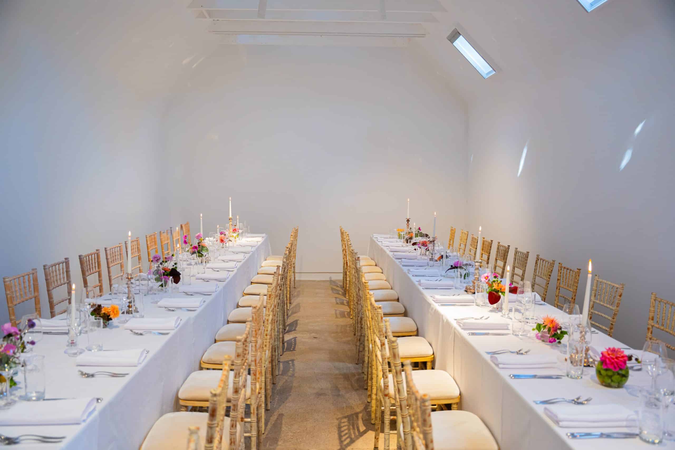 Lower Steadings supports a range of event formats, from seated dining to more relaxed, flowing gatherings that make use of both the interior space and the courtyard beyond. Capacity can be adjusted depending on layout and event style.