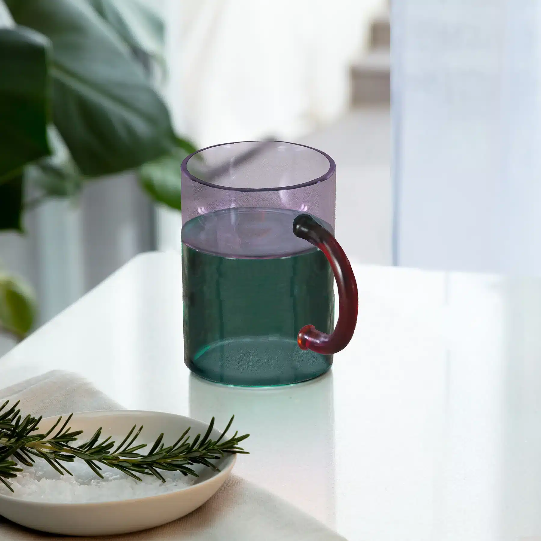 This eye-catching glass mug features bold colour blocking and sleek lines, making it a statement piece for any table or kitchen. Featuring a seamless three-tone design, its brilliant hues are precisely split to create a sleek, modern silhouette.